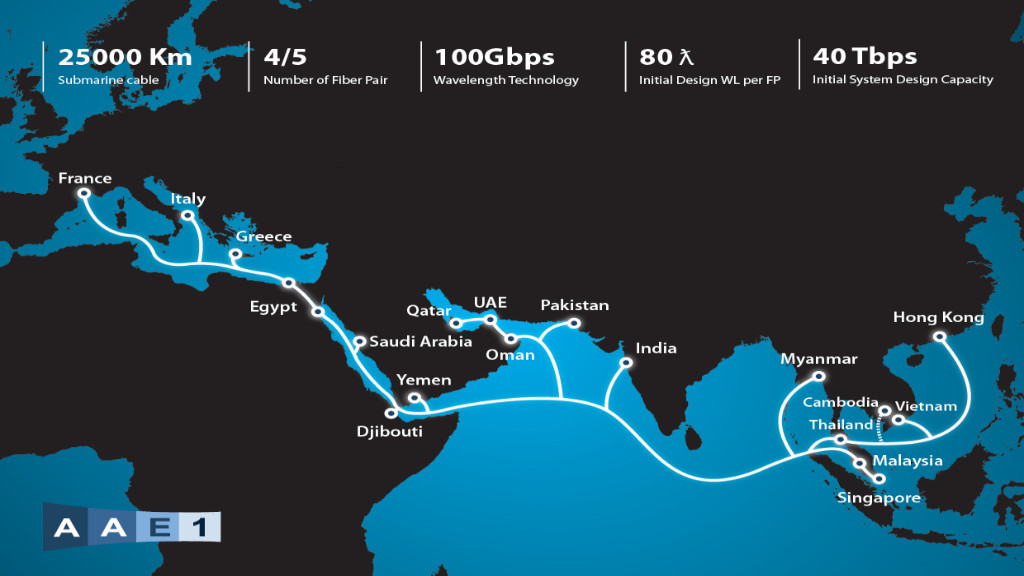 Terabit performed a detailed analysis and forecast of wholesale bandwidth demand in 20 countries, as well as strategic price and market share analyses, for a major investor in the 25,000-kilometer Asia-Africa-Europe (AAE-1) submarine cable project as part of the investor's business case evaluation. AAE-1 entered service in 2017 and the investor subsequently executed wholesale agreements for more than 1 Tbps in IRU sales during the first two quarters of operation.